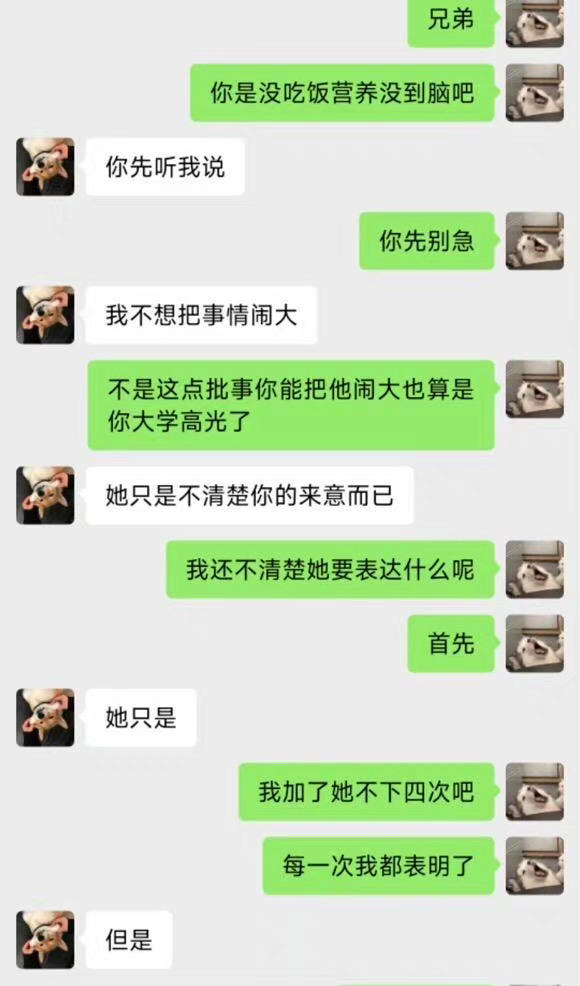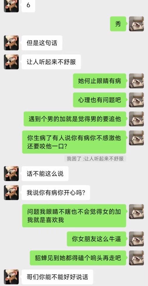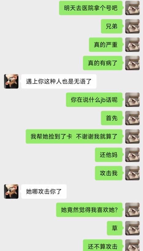 “她竟然觉得我喜欢她,艹,这不算攻击,踏马简直侮辱我。”